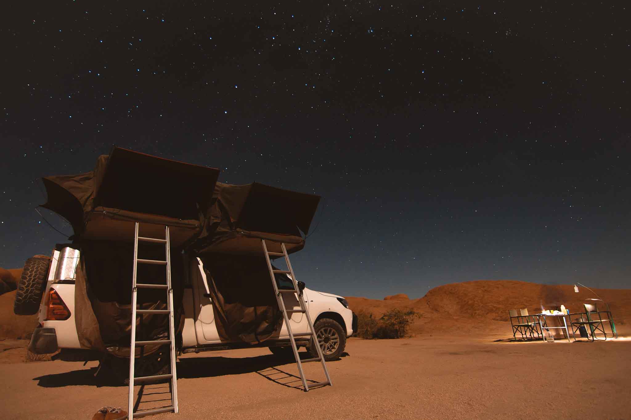 Transport : la location d’un 4x4 avec tente sur le toit, un indispensable pour la Namibie.
